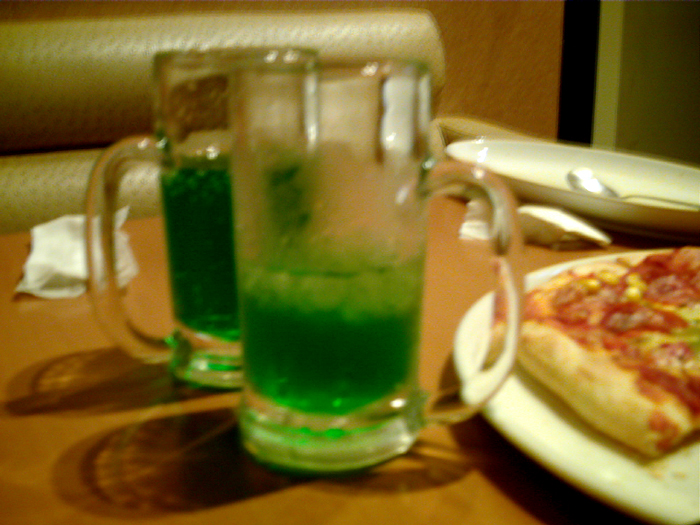 こすぷれの人さんがメロンソーダをグビグビ行っているのが