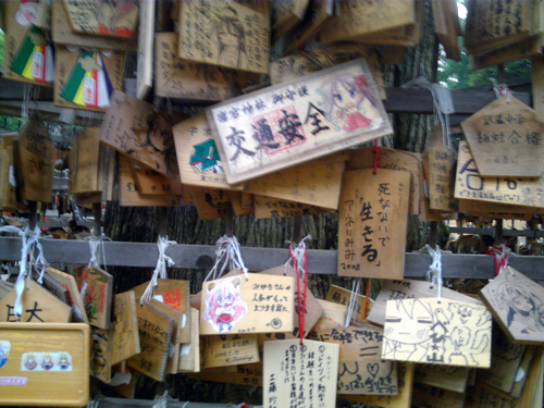 神社の駐車場には「らきすた」痛車が数台。
